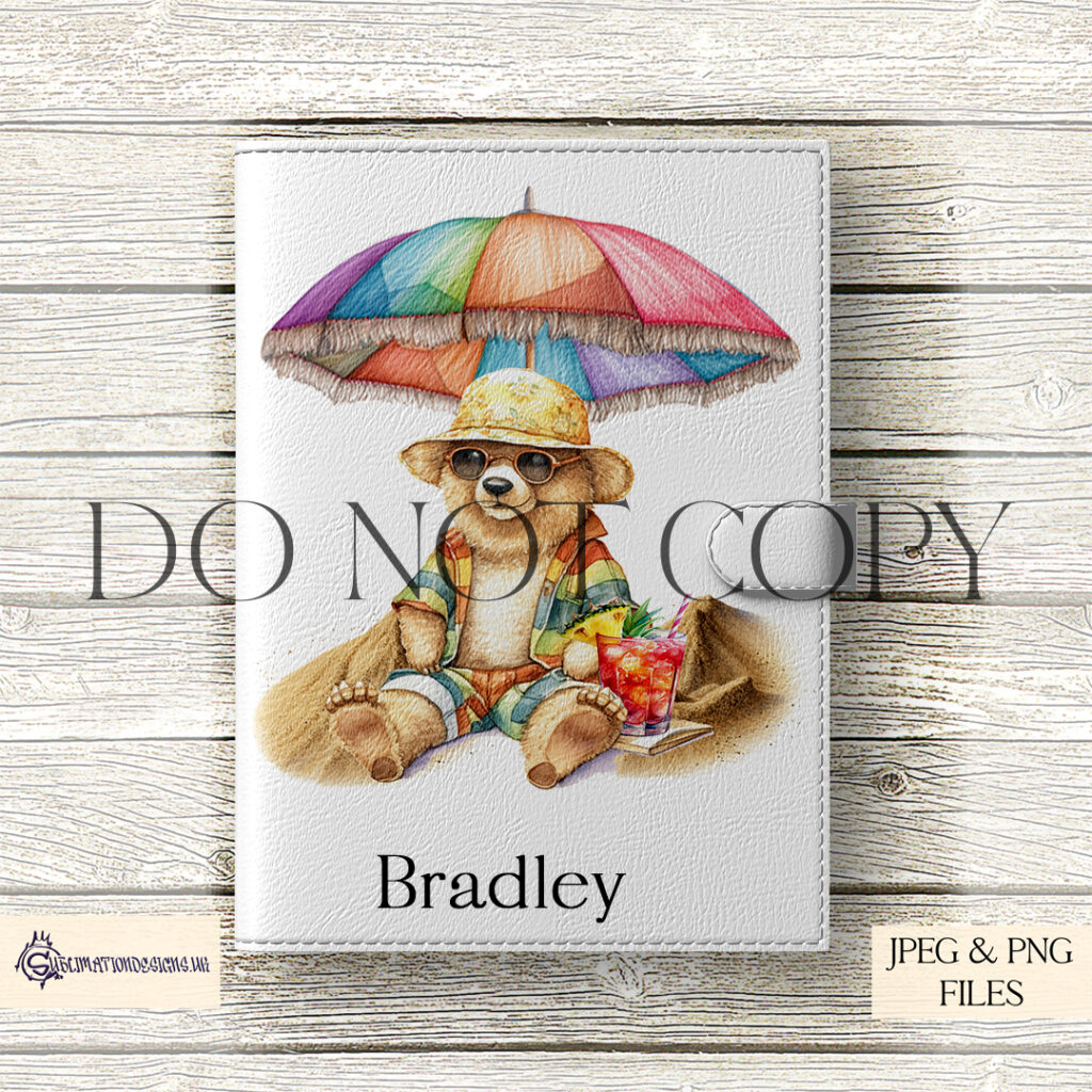 This set features self-created artwork called Bradley Bear, Part of the Ever Popular Bear Collection. Here she is with 3 textless designs.