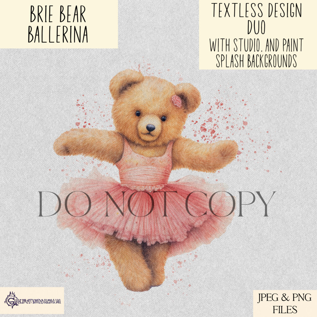 Brie comes in 2 variations, a Dance Studio scene, and a Paint Splash Background. The design is textless, so you can use it for multiple products, and events but is not to be resold digitally, and is for use on your made products only.