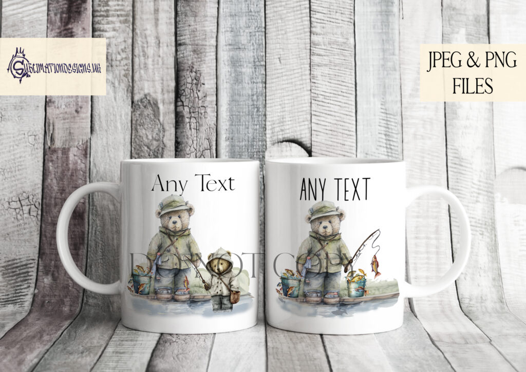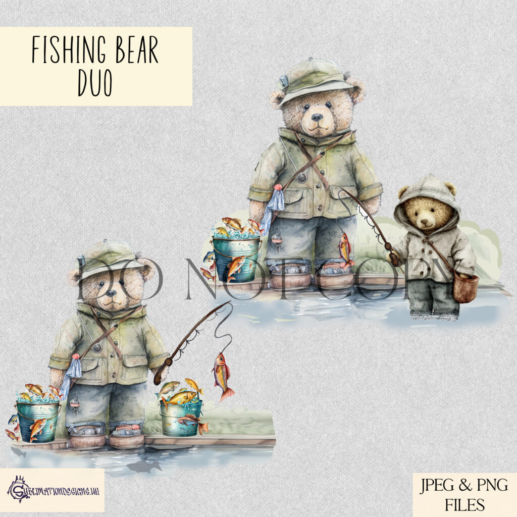 2 Textless Fishing Bear Designs in JPEG and PNG Files.