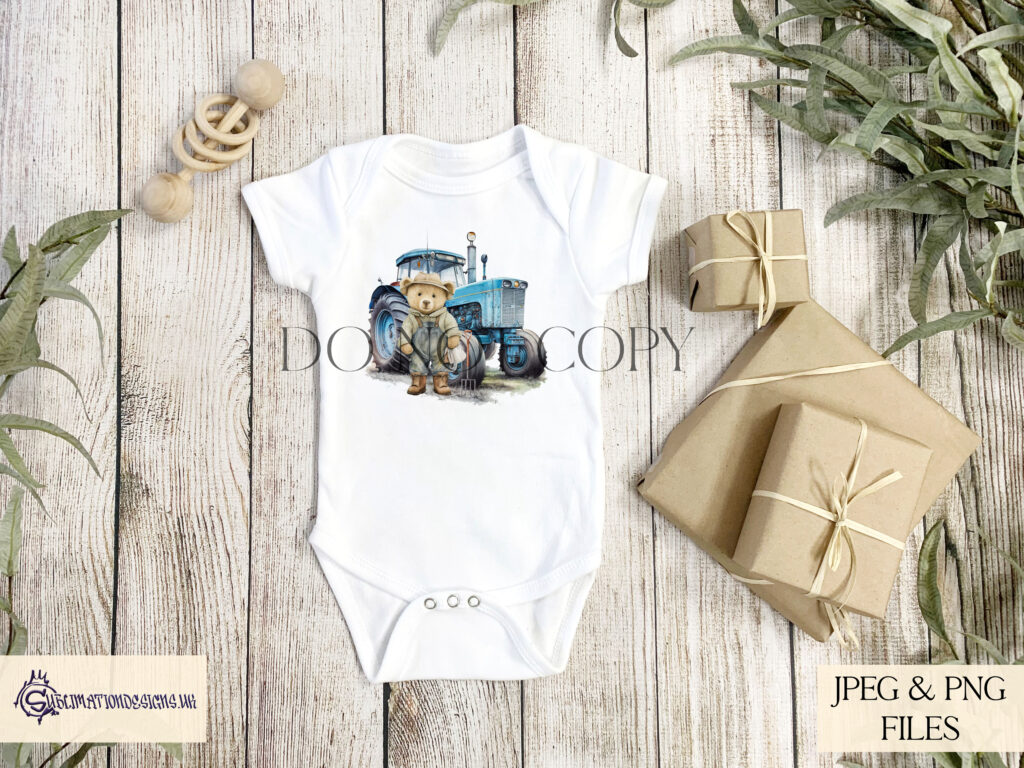 1 Freddie Bear Design with a tractor in JPEG and PNG Files.