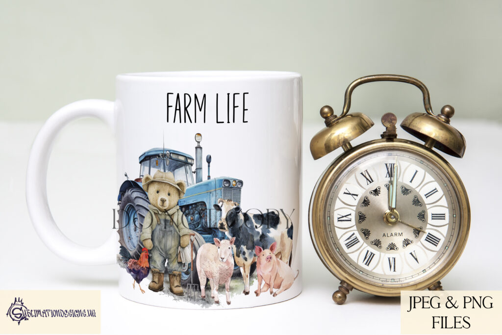 1 Freddie Bear Design with a tractor, and farm animals in JPEG and PNG Files.