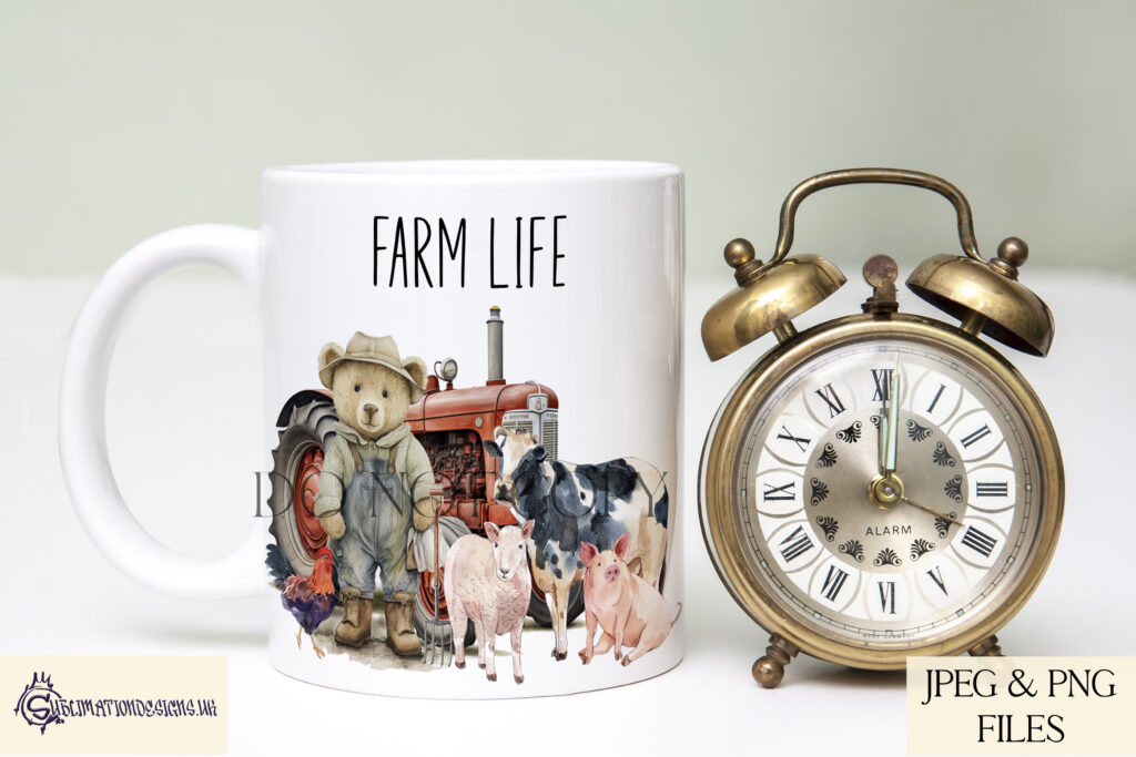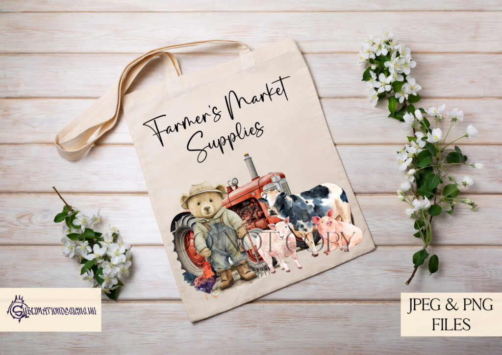 1 Freddie Bear Design with a tractor, and farm animals in JPEG and PNG Files.