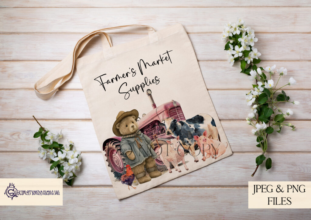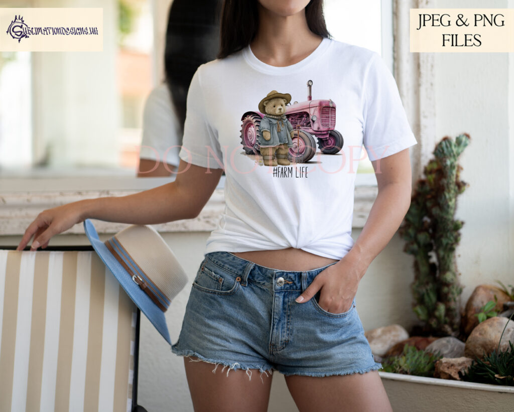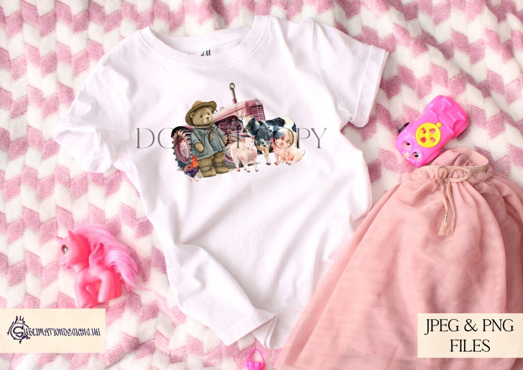 1 Freya Bear Design with a tractor, and farm animals in JPEG and PNG Files.