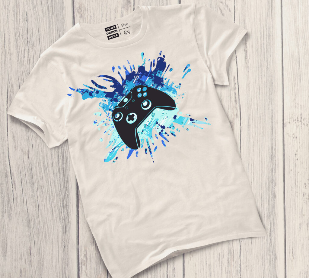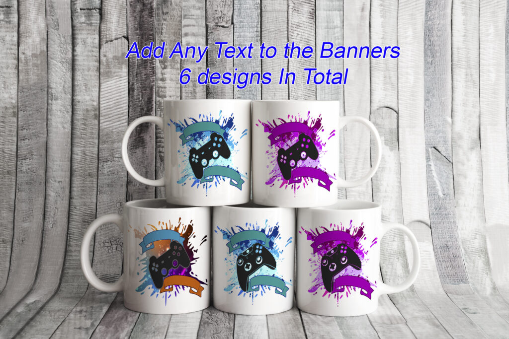 A PS-inspired, and XBOX-inspired controller, on a bright paint splash background in 3 colour variations.
