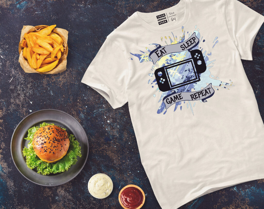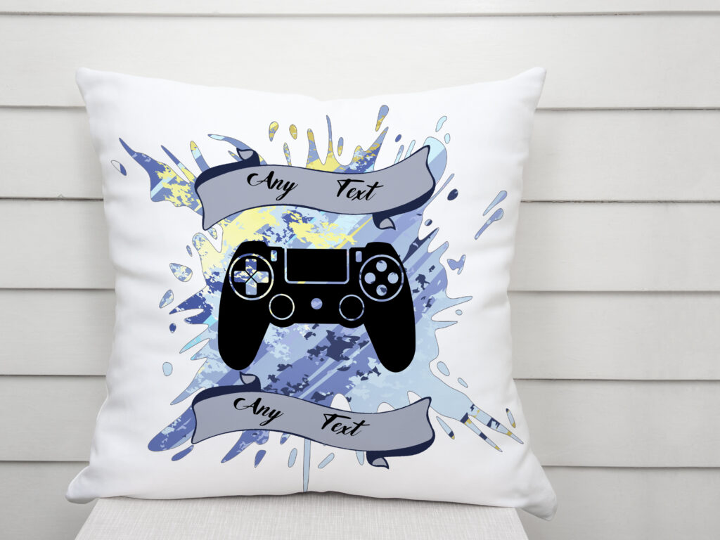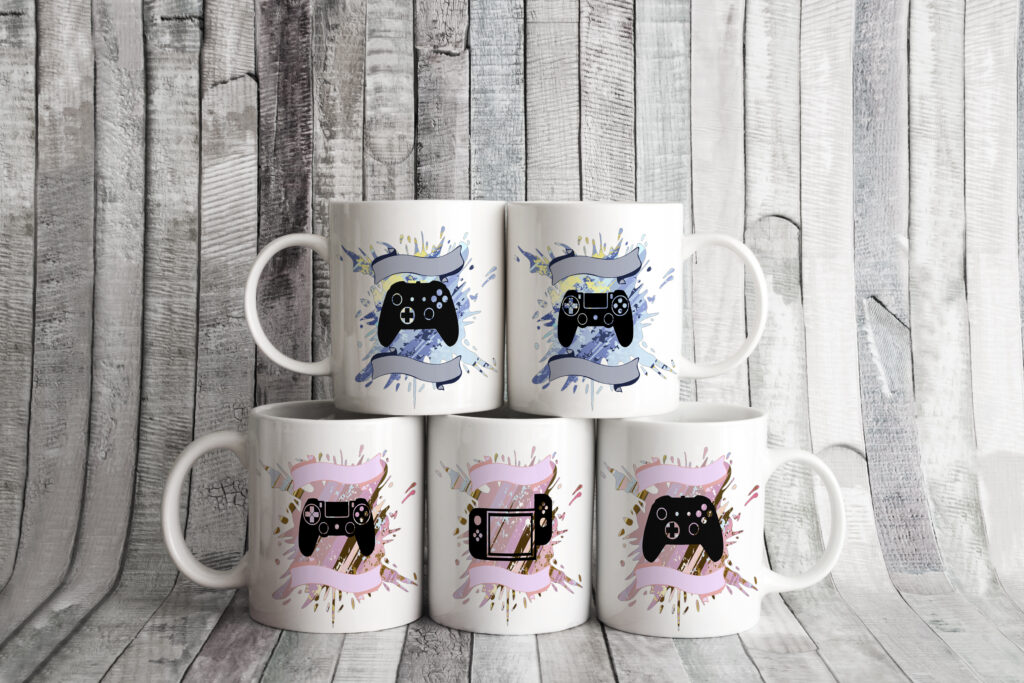 A PS-inspired, Switch Inspired, and XBOX-inspired controller, on a paint splash background in 2 colour variations.