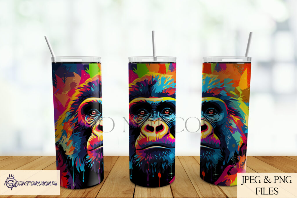 10 Individual Gorilla Designs, with various bright colour backgrounds. And a bonus Black and Grey Silverback Gorilla Design.