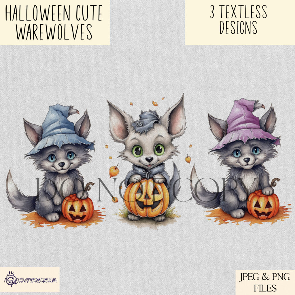 This set features self-created artwork and features 3 super cute werewolves. Here they come in 3 textless designs.