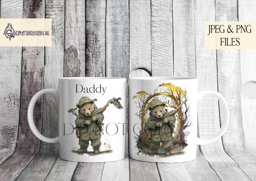1 Hunter Bear with Ducks Background in JPEG and PNG Files.
