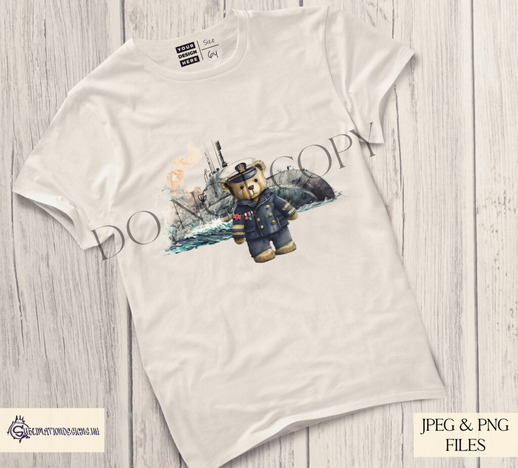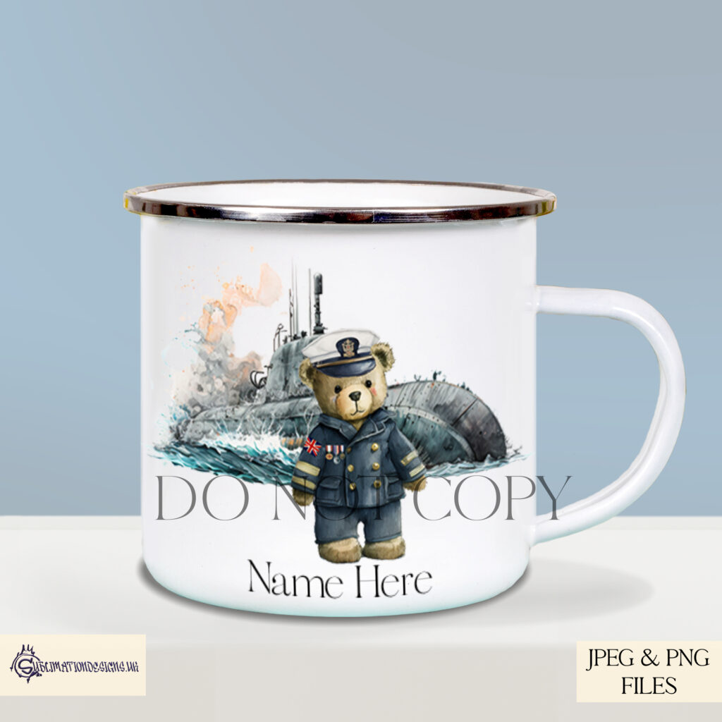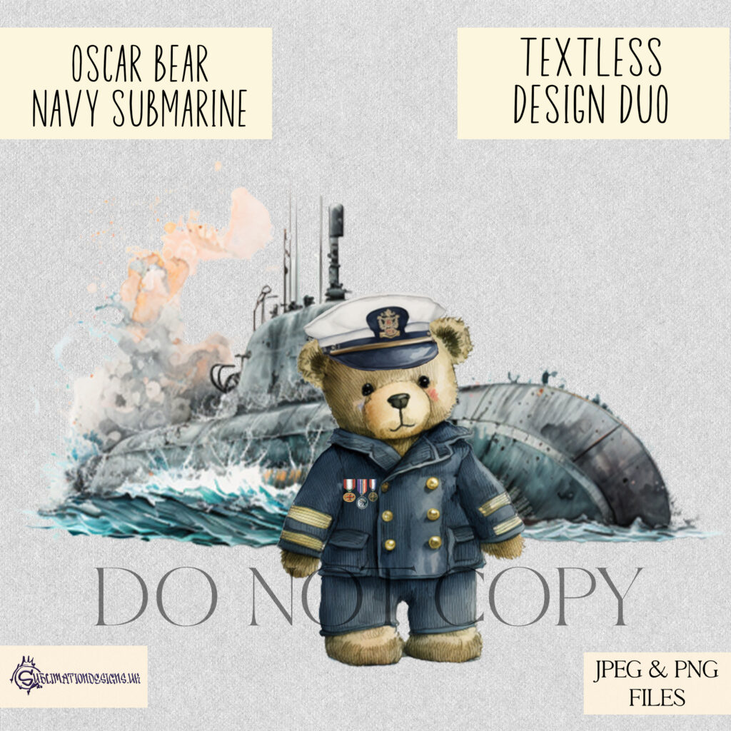Meet Oscar, the latest addition to our esteemed military bear collection. This unique design pays homage to the Royal Navy, featuring Oscar in a meticulously crafted Navy Inspired dress uniform, standing proudly in front of a Submarine.