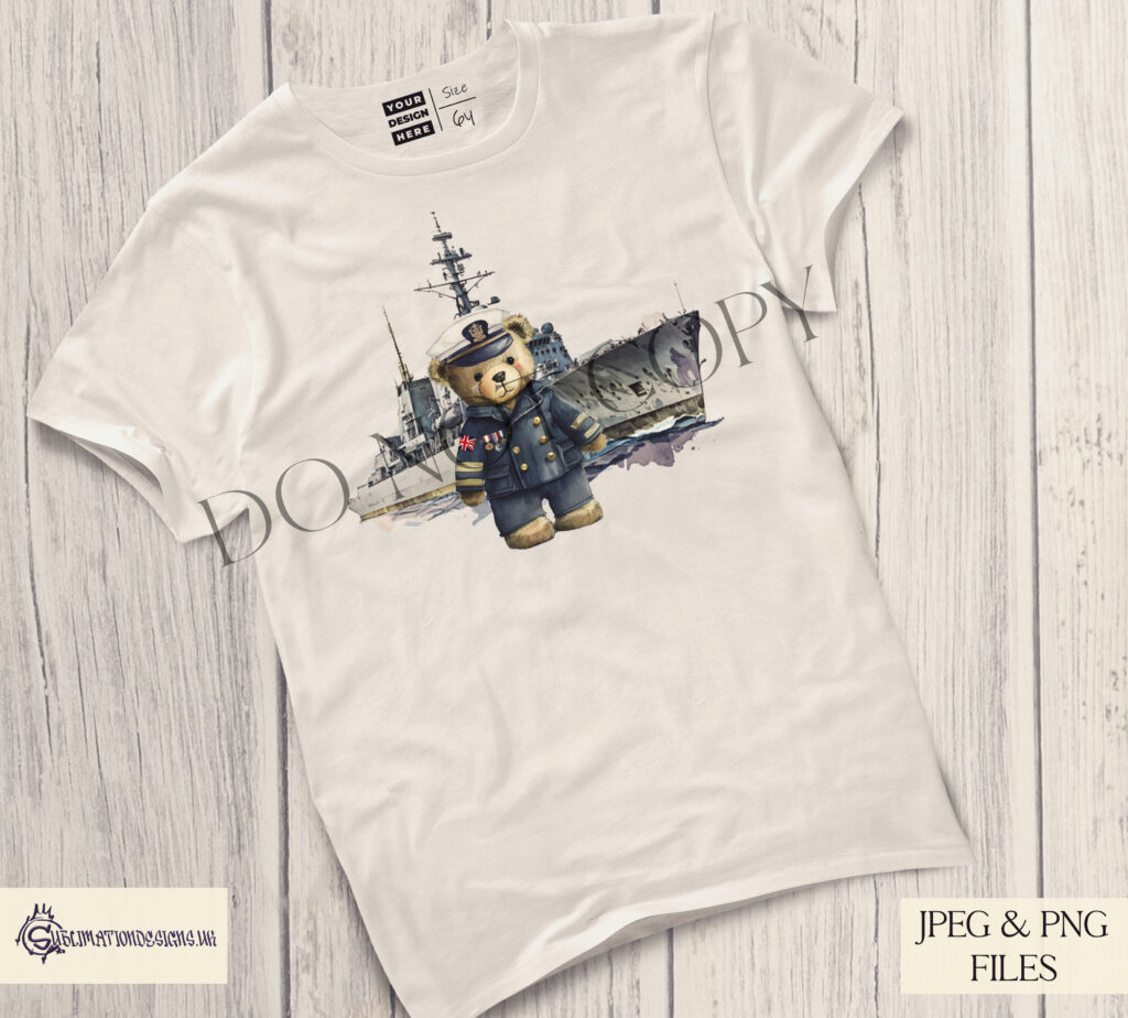 Meet Oscar, the latest addition to our esteemed military bear collection. This unique design pays homage to the Royal Navy, featuring Oscar in a meticulously crafted Navy Inspired dress uniform, standing proudly in front of a Ship.
