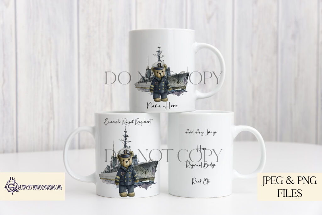 This set features self-created artwork called Oscar Bear, Part of the Military Bear Collection.