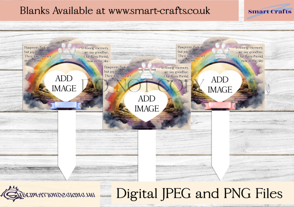 These files are on a standard Square Template, all of which are resizeable dpi300 files. And an additional set of files on a Smart Crafts Pet Memorial Template.