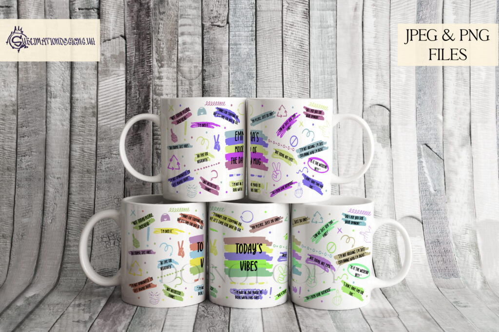 4 Today’s Vibes & 4 Mood of the Day Designs In JPEG and PNG Files.