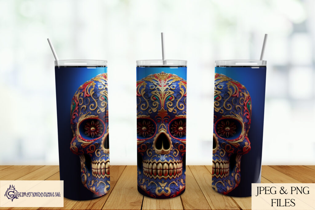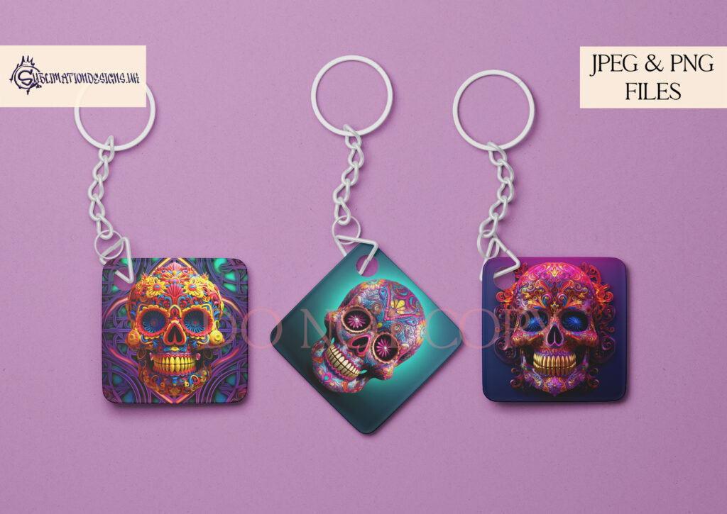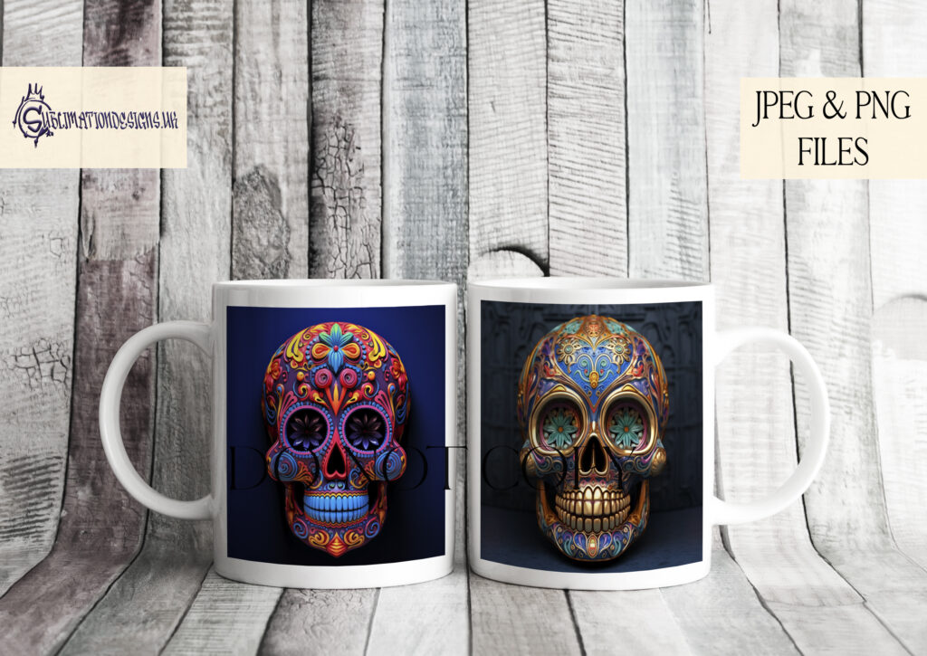 8 Individual Sugar Skull Designs, plus 4 bonus files with a patterned background.