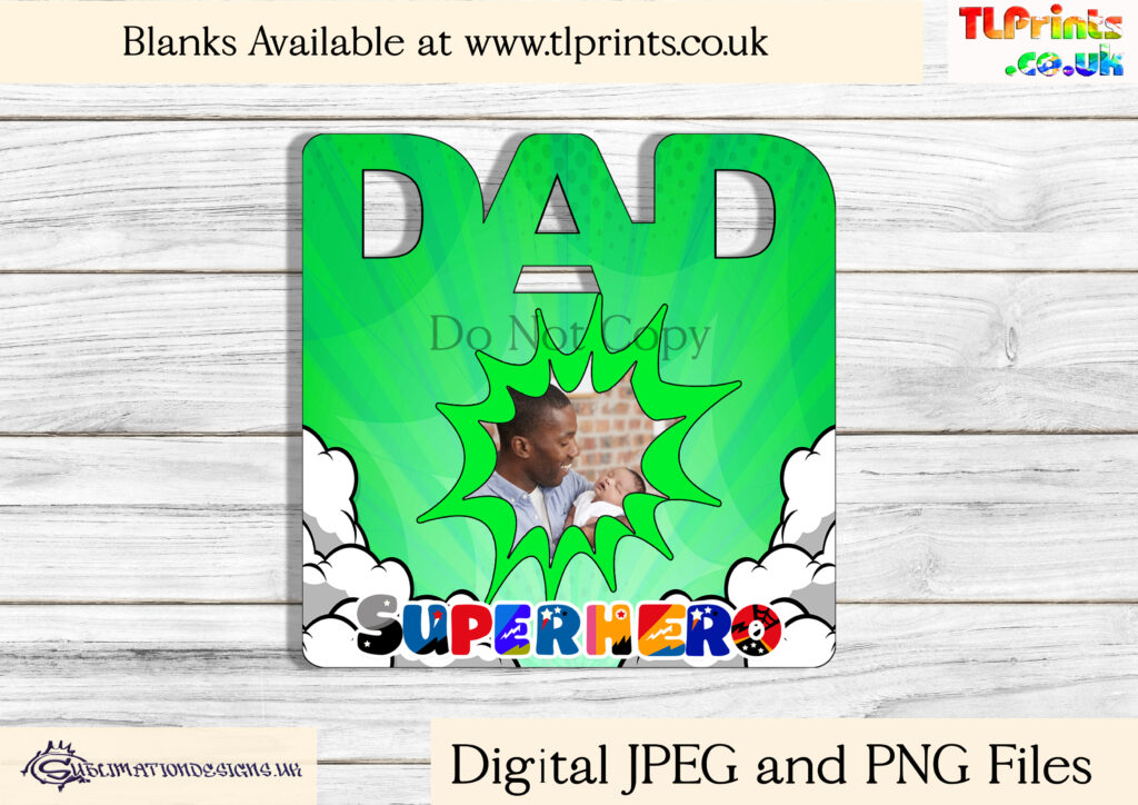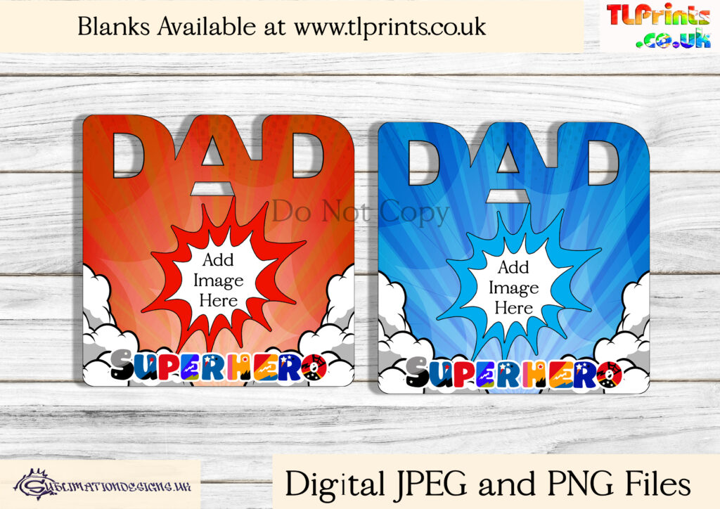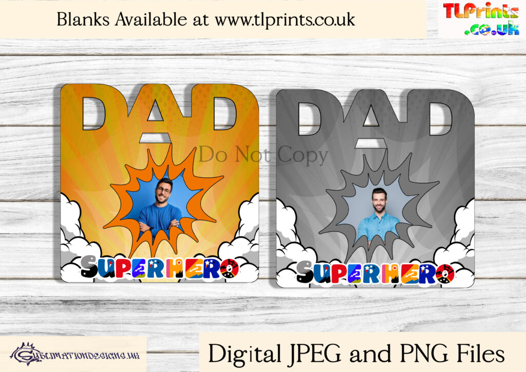 This Design to add your own picture to is a perfect gift for any dad. These come in 6 colour templates and could be used for Birthdays, Fathers’ Day, and more.