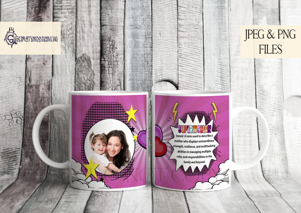 This is a great design that can be customized for your customers. Add their own photos to this design template, and lovely words to support the love of a mother, a Superwoman.