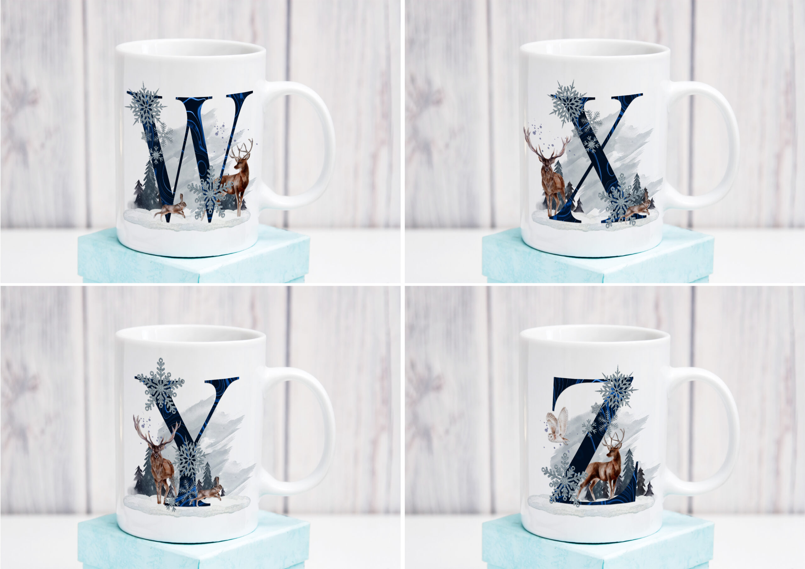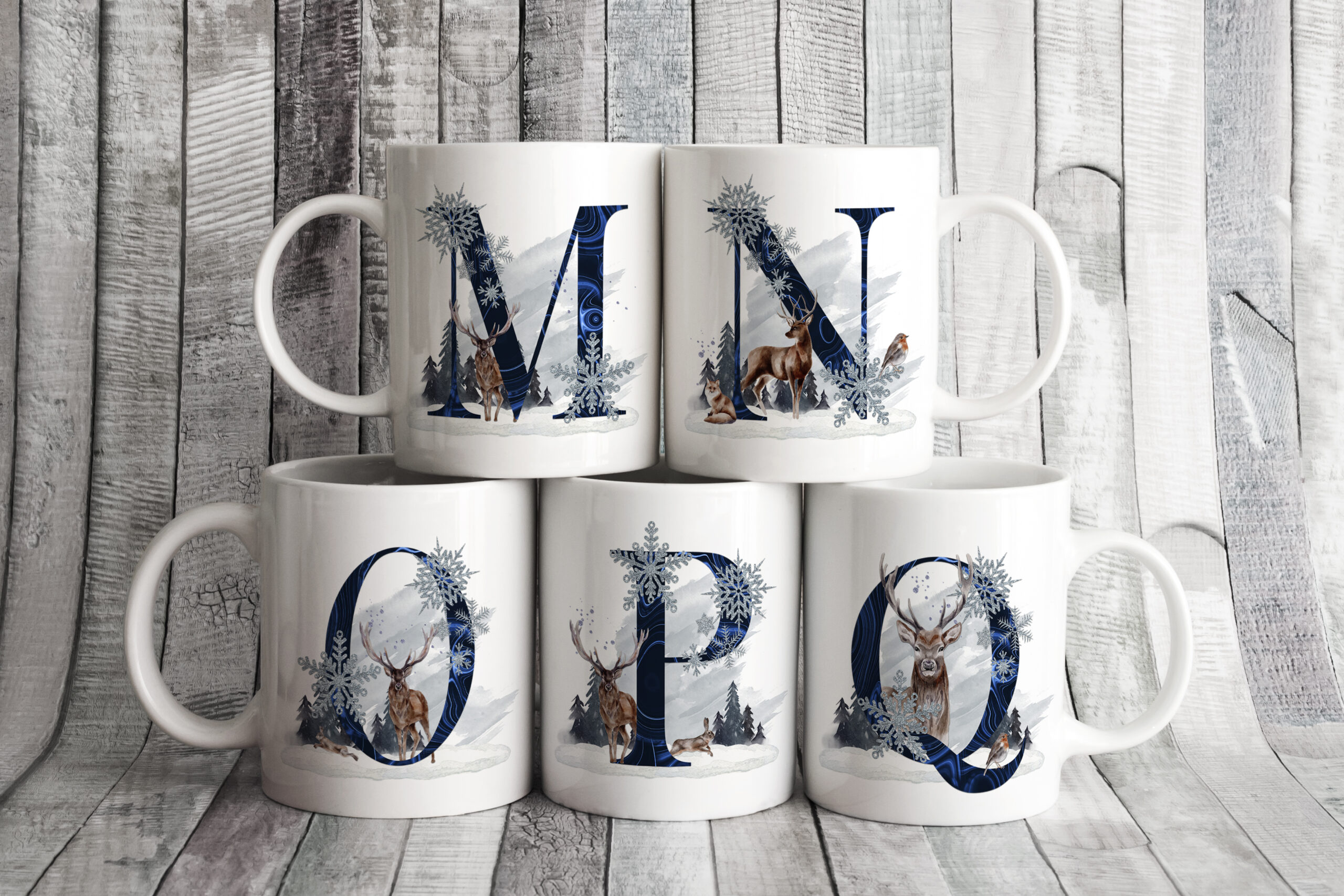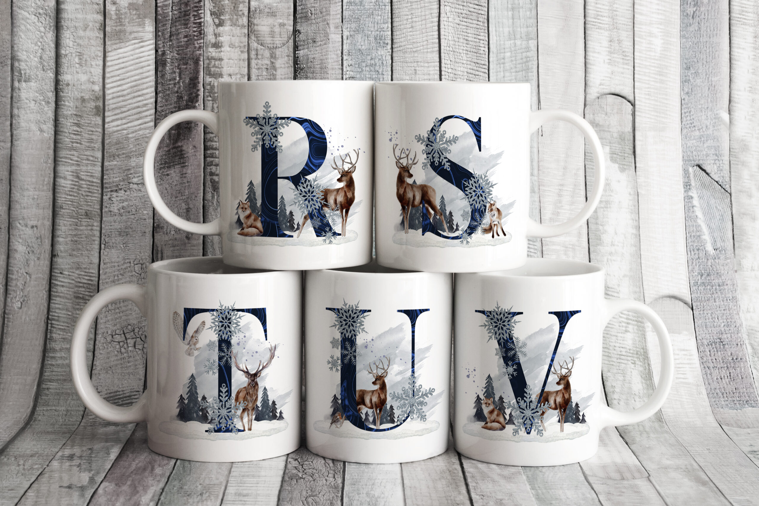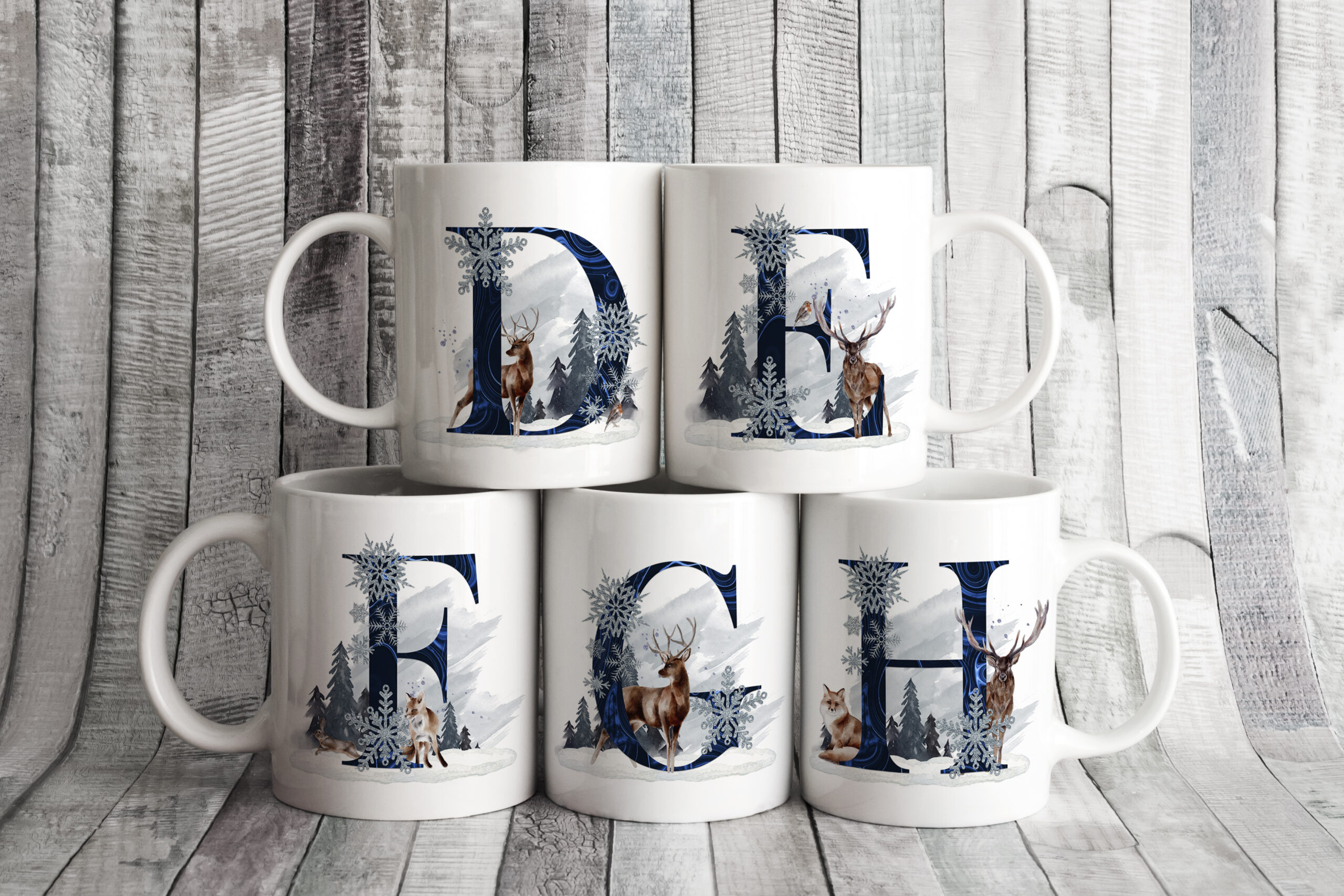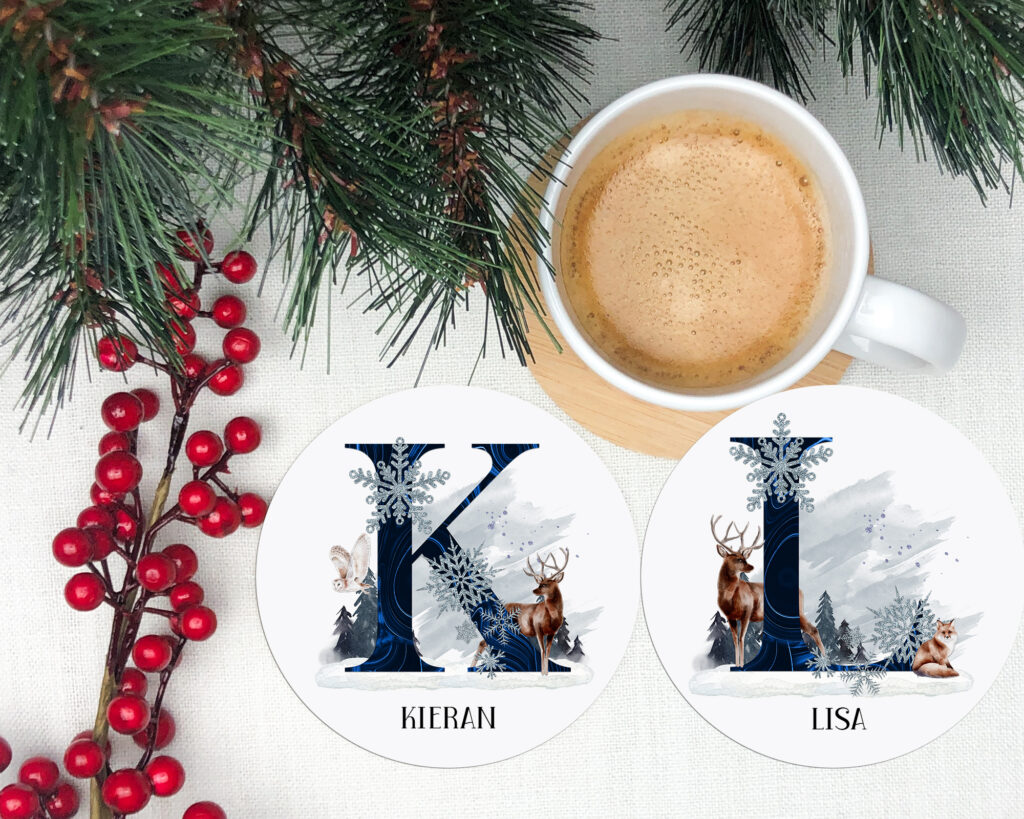 This is a beautiful Winter Scene design, with elegant winter animals. What makes this design pop is the vibrant colouring on the Alphabet. These look stunning on a variety of products.