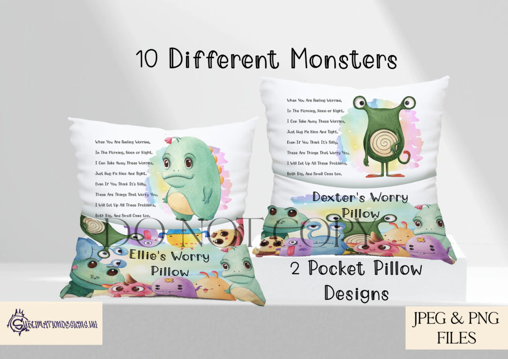 Worry Eater Monster Cushion Designs Set of 12