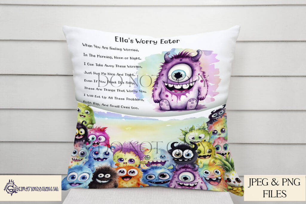 Worry Eater Monster Cushion Designs Set of 23