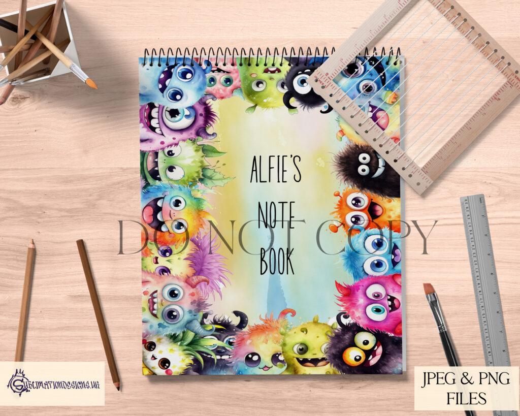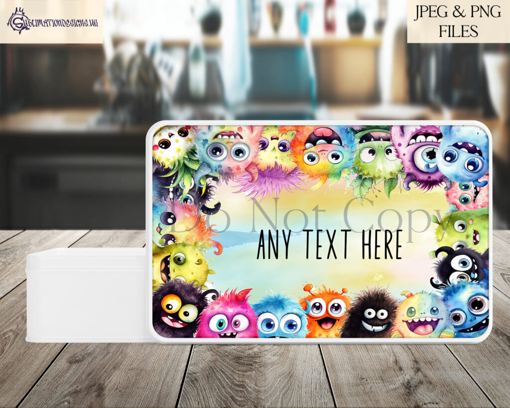 This design features 20 different cute monsters, exclusive wording, and on a vibrant paint splash background, all resizeable.